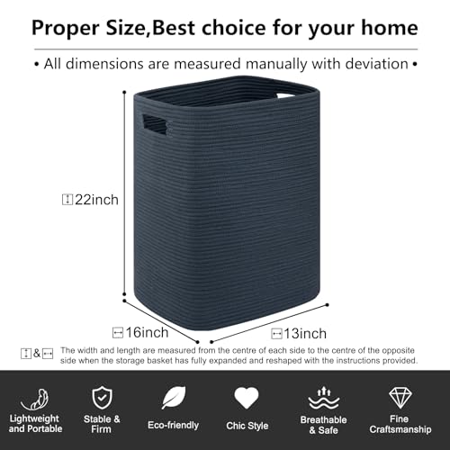 Large Blanket Basket:The overall size of the storage basket is 16x13x22 inches.This large basket can easily accommodate a family's change of clothes and keep room clean & tidy.This elegant woven storage basket bring great convenience in life to store bulky items like blankets,toys,comforters,duvets,throw pillows,cushions,stuffed animals,winter clothing etc