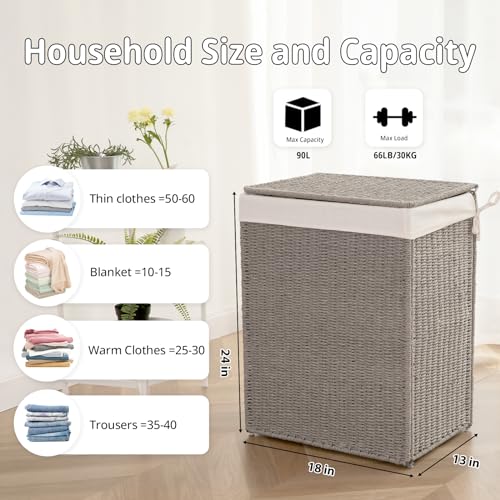 Appropriate Size and Capacity: The size of the wicker laundry hamper with lid is 18" L * 13" W * 24" H, with a capacity of 23.8 gallons (90L), which can meet most of your storage needs