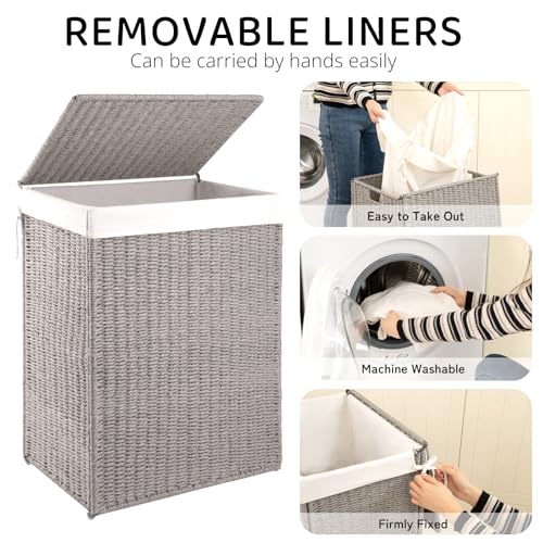 Handles and Foot Pads: Grasp the handles of the hamper with hands and easily lift the laundry hamper into the laundry room. The foot pads at the bottom of the large wicker hamper can prevent the hamper from coming into contact with water on the ground
