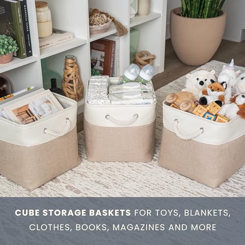 Decorative Fabric and Rope Handle - These versatile 11 x 11 storage cubes baskets for organizing your everyday life are made with a thick, high-quality fabric and fitted with rope handles to add a stylish touch to a living room, bedroom, office, or personal space.