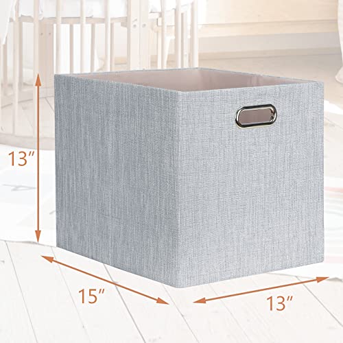 Sturdy&Durable: The 13x15x13in cube storage bins made of superior thick fabric and cardboard, with shiny metal handles. They’re super sturdy and not flimsy, perfect for the cubed bookcase, home organized, cloth, shelves, closet, office and toy. This is what you’re looking for something elegant, stylish, and durable!