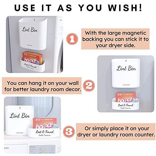 Effortless To Clean Lint Trash from laundry room/ Laundry Lost And Found bin For Dryer:- This Lint container for laundry room is made with sleek design which makes it super easy to clean; just grab the bin, dump, and put it back. A perfect solution for those annoying fabric softener sheets and lint. It's easy to use and simple to empty. Try it, your family might finally stop leaving lint on top of the dryer and make your laundry room a vibrant place!