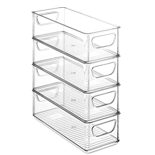 Practical stackable design to help maximize your space. Stack or use them side by side to keep items organized and easy to find. Each bin measures approx. 10” L × 3.9” W × 3” H