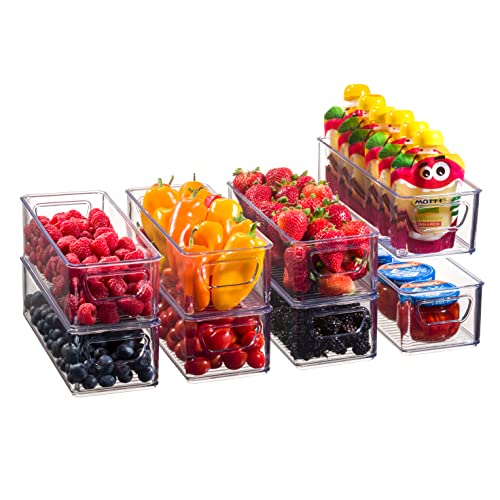 Keep your refrigerator, freezer, countertops, kitchen cabinet or pantry neatly organized with these stackable fridge organizer pantry storage bins
