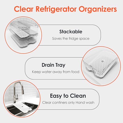 [Drain Tray Design] The freezer storage containers come with a drain tray, perfect for placing freshly washed produce. The tray keeps the food elevated, so it doesn’t sit in water, this will help keep food fresh & extend the shelf life of food in the fridge