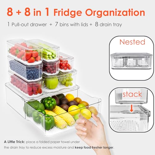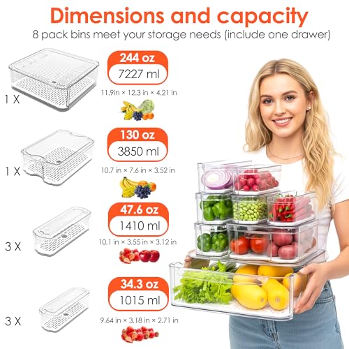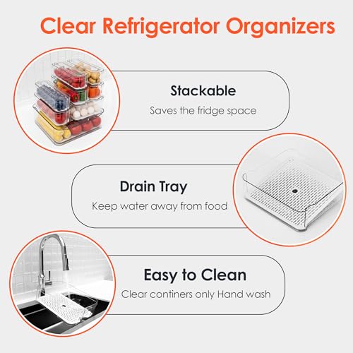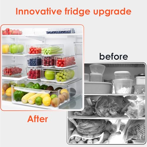 [Stackable Fridge Organizer] Refrigerator organizer bins with lids help save space and keep your fridge organized, storing food, fruits, vegetables, and more. Perfect for fridges, freezers, cupboards & drawers
