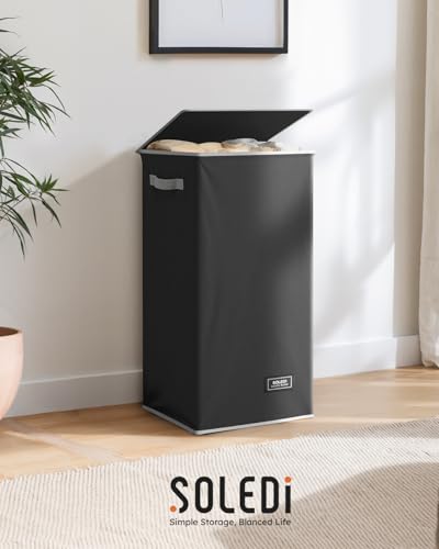 ?Great for small spaces?The small laundry hamper standing size 16.3"L×9.5"W×27.6"H, 70L narrow laundry hamper is designed for narrow spaces. It will help you better save every inch of space in your home.