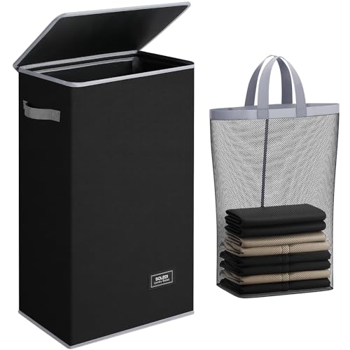 ?With Lid & Removable Bag ?The lid keeps your dirty laundry out of sight, provide you with a tidy environment. Equipped with a removable inner mesh bag, you can take the clothes out without moving the whole dirty clothes hamper and carry the clothes to the laundry room, bathroom and other places easily with this inner bag