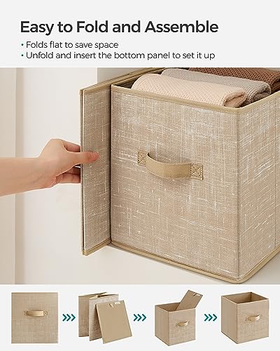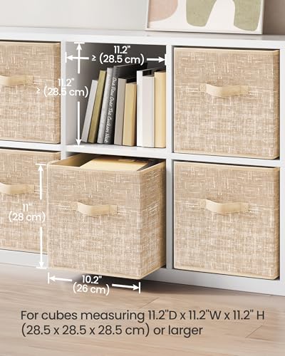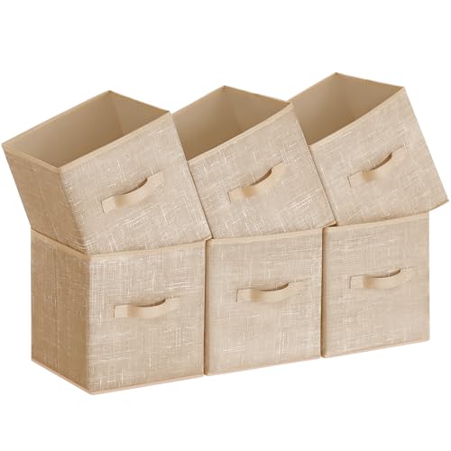 [Durable and Stable] Organize your items with this set of 6 durable, stable storage cubes. Each box with two handles can hold up to 11 lb with a rigid structure that’s made with 80 g/m² non-woven fabric and thick cardboard