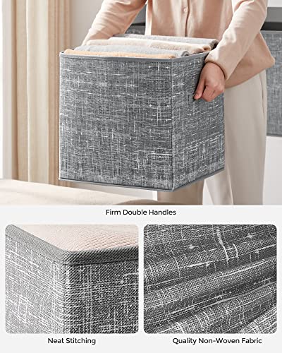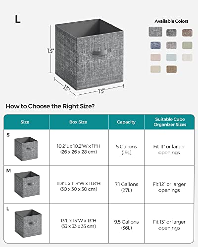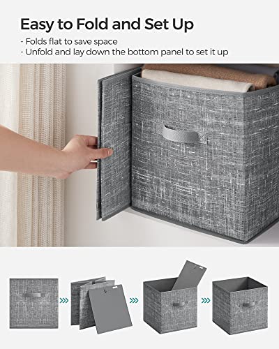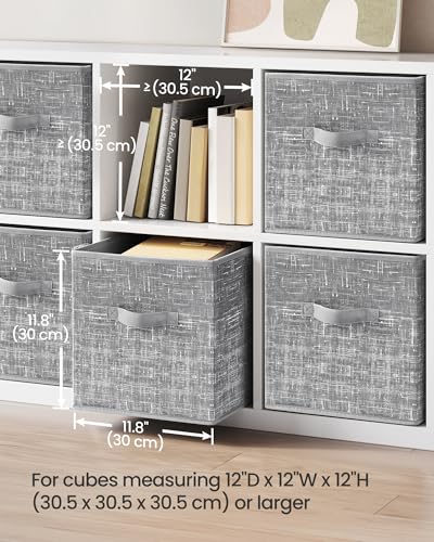 [Durable and Stable] Organize your items with this set of 6 durable, stable storage cubes. Each box with two handles can hold up to 11 lb with a rigid structure that’s made with 80 g/m² non-woven fabric and thick cardboard