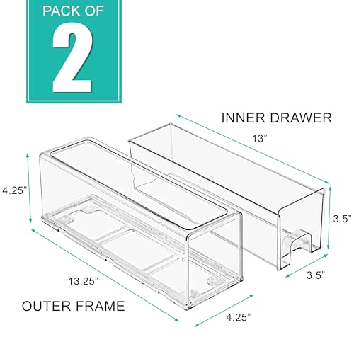 Convenient Inner & Outer Sizes for Optimal Fit: Each drawer has an inner bin size of approximately 13 x 3.5 x 3.5 inches and an outer frame measuring about 13.25 x 4.25 x 4.25 inches, making these organizers suitable for fitting inside most standard refrigerators, cabinets, or pantry shelves