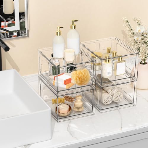 Premium Material: Each organizer measures 5.5 "L x 7.5 "W x 4.4 "H. The transparent color is convenient for you to find what you need quickly, and is ideal for storage and stronger and safer than glass.