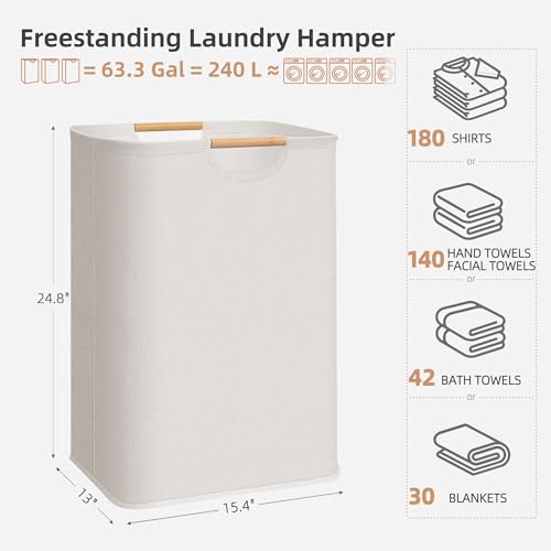 Large Capacity: Each hamper measures 15.4"L x 13"D x 24.8"H and offers 80L of space, perfect for holding up to 4.5 loads of laundry. With a total of 240L (63.3Gal), this large laundry basket perfect for large families or those who need multiple hampers for sorting laundry.
