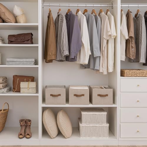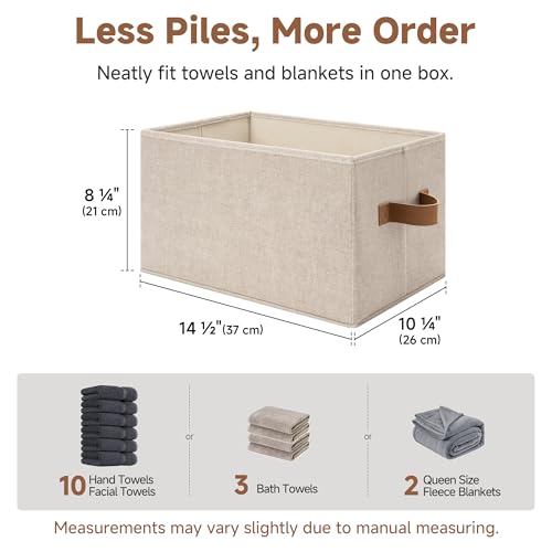 Perfect for Closet Shelves: Sized at 14.5"L x 10.25"W x 8.25"H, these fabric storage bins fit most closet shelves and linen closets. Ideal for organizing clothes, towels, and accessories without wasting shelf space.