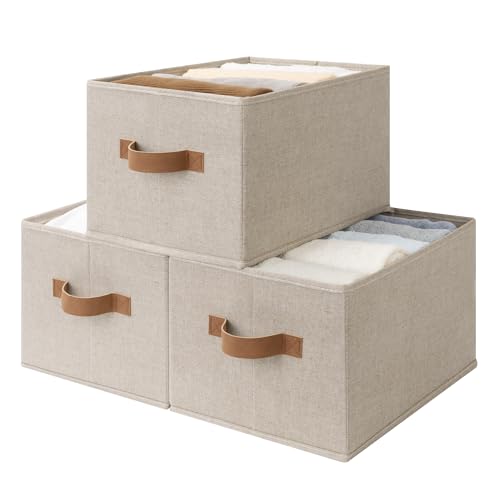 Sturdy Handles for Easy Access: Built-in soft yet durable handles make it easy to pull bins in and out of shelves for everyday closet organization.