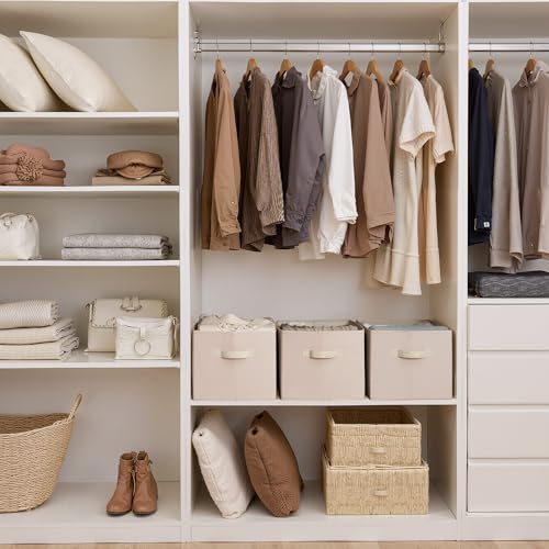 Neutral Tones: Crafted from breathable, soft fabric in a calming light brown shade, these fabric storage bins blend effortlessly with closet organizers and storage systems. The neutral tone complements bedrooms, bathrooms, nurseries, and living rooms while keeping shelves neat and organized.