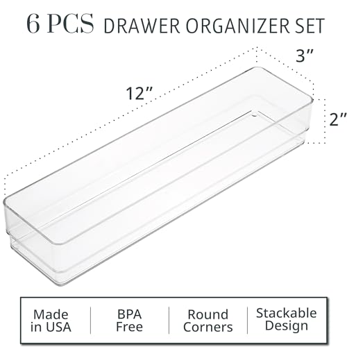 This comprehensive set includes six meticulously crafted 12-inch by 3-inch shallow drawer organizers, designed to accommodate your essentials with precision. And with additional sizes available, you have the freedom to expand your organizational arsenal to tackle any cluttered drawer with finesse.