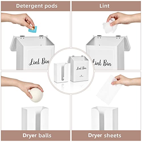 ?Wide Applications?: Not only can you use lint bin as a trash can,put dryer lint, hair, and other laundry garbages,but also as a storage box for detergent soap pods. Dryer Sheet Holder can contain both dryer sheets and balls.