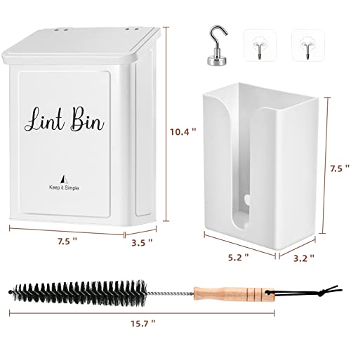 ?High Quality?: This lint bin is made of sturdy metal and spacious enough with 10.4X7.5X3.5 inch .The sheet holder is made of high-grade odorless plastic,7.5X4.8X3.3 inch. They both have highly strong magnetic backing, so they can attached to your washer or dryer firmly.