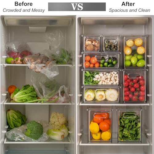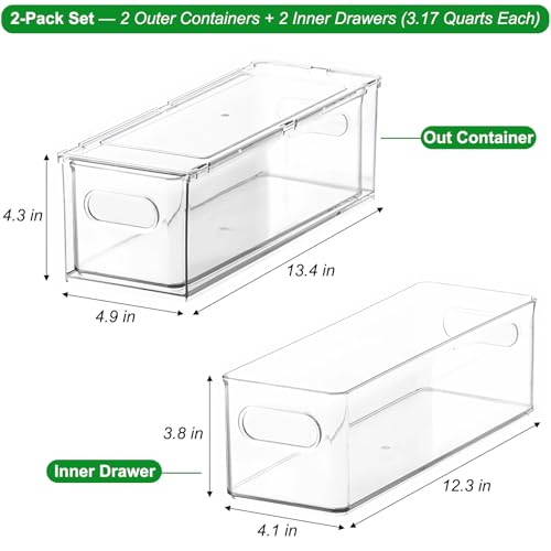 Premium Material: Crafted with food-grade PET plastic, our fruit storage containers are thicker and more durable than ordinary plastic bins. Crystal-clear walls enable instant content visibility without drawers opening. Easy hand wash care (non-dishwasher-safe)