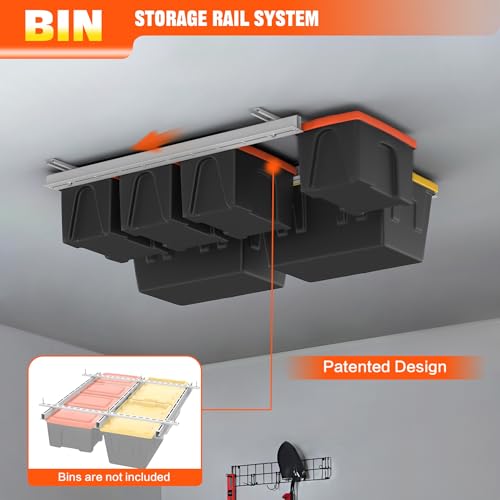 Declutter Your Garage-Our overhead bin storage racks keep items off the floor and protected. Organize your garage and free up floor space. Conveniently store gear overhead with tote storage system