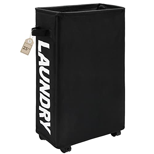 Tall & Slender Shape: Display size of the narrow laundry basket is 16" x 7.8" x 25" / 40.5 x 20 x 63.5cm ( Plz refer size carefully), suitable shape storage bin fits narrow space