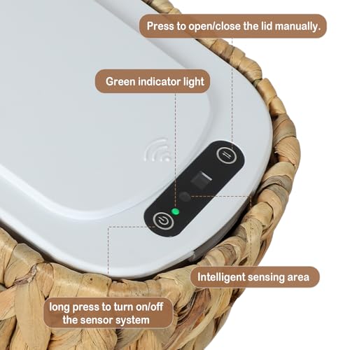 ?Maximize Your Space?our slim and narrow bathroom trash can is designed to fit into tight spaces, Measuring 11.5*12.6*6.7inches,for tight spaces such as bathrooms, bedrooms, or small kitchens. Slim profile of mini kitchen trash can allows small kitchen garbage can to fit in narrow areas, while contemporary design of Automatic trash can and wicker style adds a touch of style to any room.