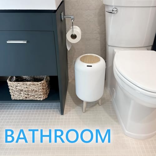 SMART MOTION SENSOR: Our small trash can for bathroom use advanced automatic sensing technology. Place your hand in the area above the infrared motion sensor, the lid will open in 0.3s and will close automatically after 5s if none movement is detected by sensor. The opening and closing of the lid is silent and will not affect those around you.