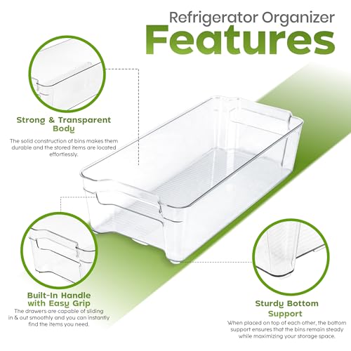 Set of 8 Pieces Pantry Organizers and Storage - fridge organizers and storage bins box allows for better grocery management by providing the appropriate space for proper allocation of commodities - 8 Pieces Fridge Organizer Bins Set: Refrigerator Organizing Bins measures 12.4’' L x 6.2” W x 3.5” H.