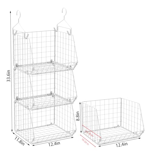 Perfect Storage Organization: 3 tier wide open wire basket allows you to easily view, put in and take off more easily. X-cosrack metal basket hanging shelves provide a great storage solution for any room in the home. Maximize vertical space for storing clothes or toys, handbags, socks, gloves, hats, and more.
