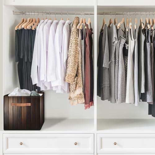 Easy To Carry: This storage bin comes with 2 leather handles for your daily movement. The handle design combines pulling and pulling functions, which is very convenient whether it is pulled out from the shelf or picking up internal items