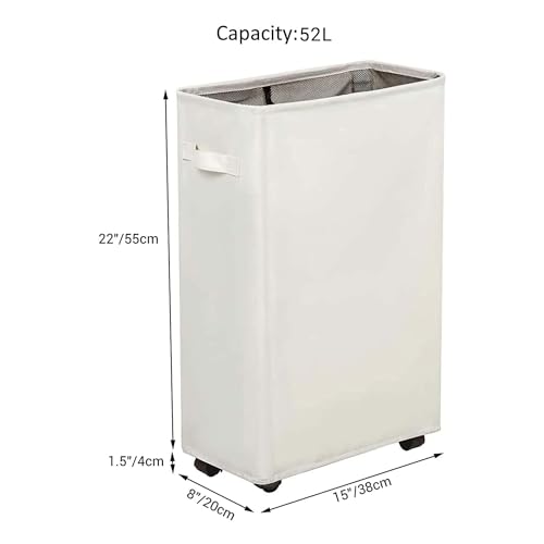 SLIM & TALL SHAPE- Product Dimensions: 15”×8”×22”(Please refer size carefully). Our rolling laundry hamper can easily fit into narrow space such as small space between washer and dryer or a small cabinet area. Our laundry basket with wheels is Perfect for school college and students use in dorm room.